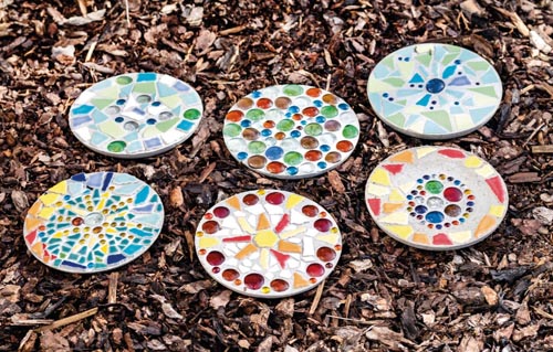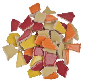 20 - 55 mm, kb. 7 mm vastag, glazúrozott kerámia, különböző szín és forma, kötetlen válogatás, kb.20 x 30 cm felületre elegendő