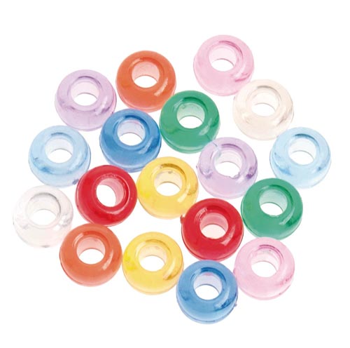 Műanyag gyöngy - Kongó, kb.1000 db, kb. ø9 mm, áttetsző színes