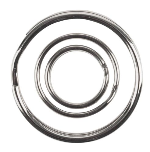 Kulcskarika, ezüstszínű, 30 db, kb.ø 15 mm, 20 mm és 30 mm méretben