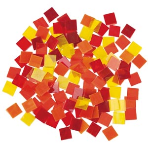 Tiffany mozaik lapok, 200 g, 10 x 10 x 3 mm, sárga/piros