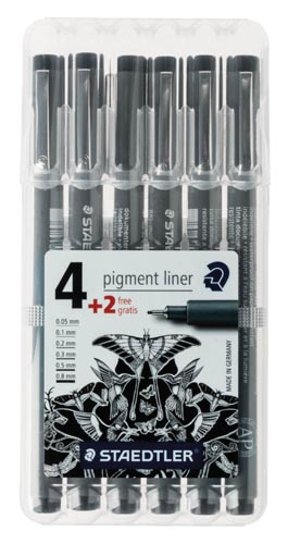 STAEDTLER® pigment liner 308 Johanna Basford - Wonderbeast Edition, 6 db fekete