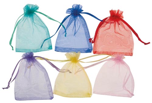 Organza zsák, színes, kb.90 x 120 mm, 12 db