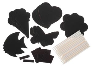 Tartozékok: 25 db karckép 5 különböző mintával (pillangó, fagyitölcsér, szív, virág, hal) - 25 db öntapadós mágnes csík - 25 db műanyag karcoló pálca.
