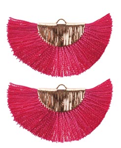 Legyező rojt, kb. 45 x 25 mm, arany foglalat, 2 db, fukszia