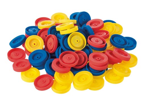 Műanyag kerekek, kb.ø 40 mm, tengely 4 mm, 100 db