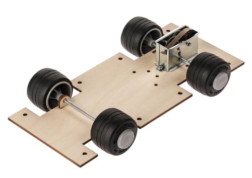 Laserrel vágott tisztára dolgozott rész. 4 db tengelytartó füllel 4M tengelyméretben. A hajtómotorok rögzítésére a 3 mm fúrt lyukakkal ellátva. Karosszériának is megtalálhatók az előre fúrt lyukak.