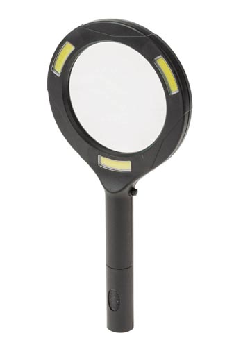 LED világítás (250 Lumen), ki/be kapcsolóval, hideg fény, 3 -szoros nagyításra képes, valódi üveg, műanyag nyél és keret, a működésre szükséges 2 db 1,5 V(AA) elemet külön kell megrendelni.