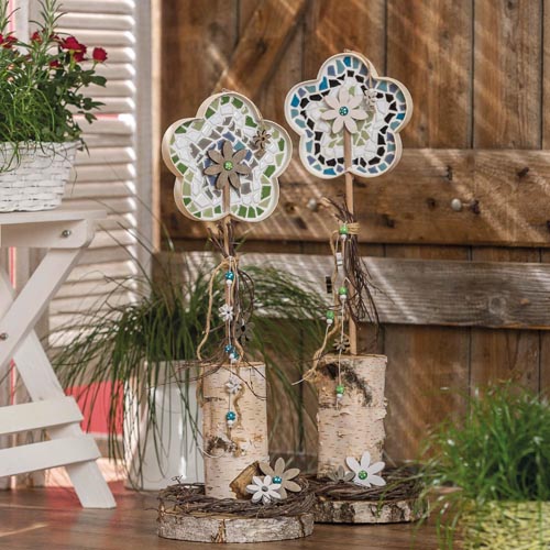 Fa mozaik virágkeret, kb. 185 x 180 x 30 mm, 1 db